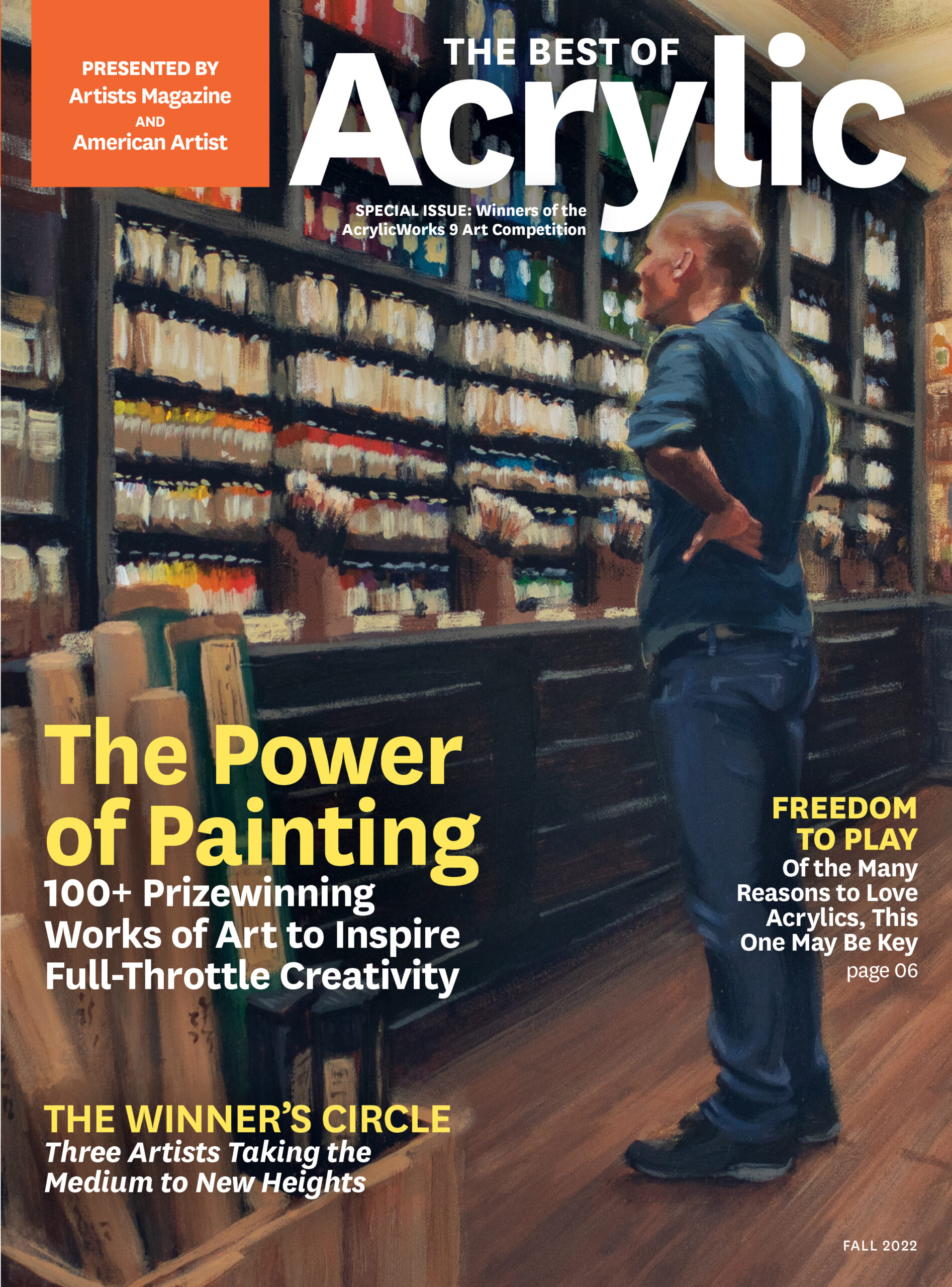 Join artists from around the globe as they share their love of acrylics in our AcrylicWorks 11: The Best of Acrylic competition. The Juror of Awards for our 11th year is fine artist Joseph Gyurcsak, who’ll select a First, Second and Third Place winner, along with 10 Honorable Mentions from at least 100 finalists. In addition to cash prizes for top award winners, all works of art will be featured in a special publication presented by Artist Magazine and American Artist.