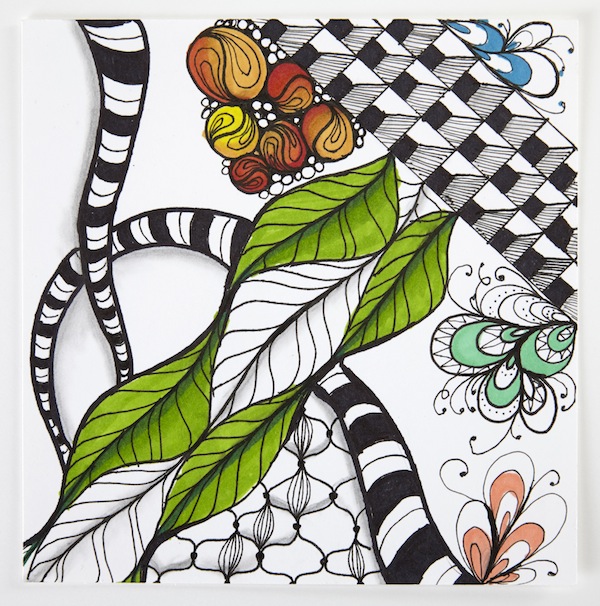 Additionally, you can add darker color to your work by painting over areas with more Indian Ink–or you can color in sections with marker.