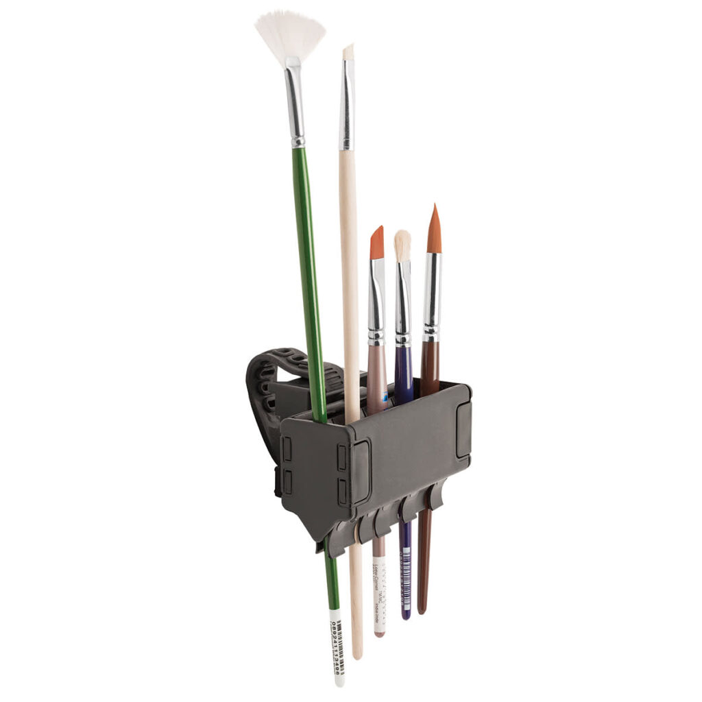 These are just a few of the innumerable accessories available to outdoor painting. What would you add to the list?In the chaos of outdoor painting, it can be difficult to keep your brushes from tumbling to the ground, where they get lost in grass, covered in sand, or washed away in a stream. A brush holder like this keeps tools within reach and off the ground. With its simple yet effective design, the brush clip keeps your brushes organized, stable, and in reach.