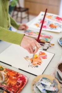 Find Your Flow. Try an automatic writing exercise Jenna calls flow writing. “It’s a simple practice that works even if you’re not a huge fan of journaling, she says. “It’s just a matter of writing for as little as a few minutes and letting the words flow out of you. With no judgment. The process of writing helps develop and strengthen those parts of the brain that are similar to the ‘flow state’ when we’re painting or creating.” Jenna often writes about how she’s feeling in that moment or about something that’s inspiring her. “I usually end up with some fun ideas for what to paint next,” she says.