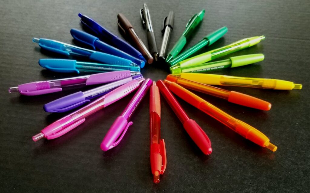 Although erasable ballpoints exist, most pens are not erasable. Once a line is made, it is permanent, and for artists this can be daunting but also quite rewarding. “Mistakes” can be left alone or corrected by incorporating them into an image with a darker value or another color, exposing the artist’s creative process.
