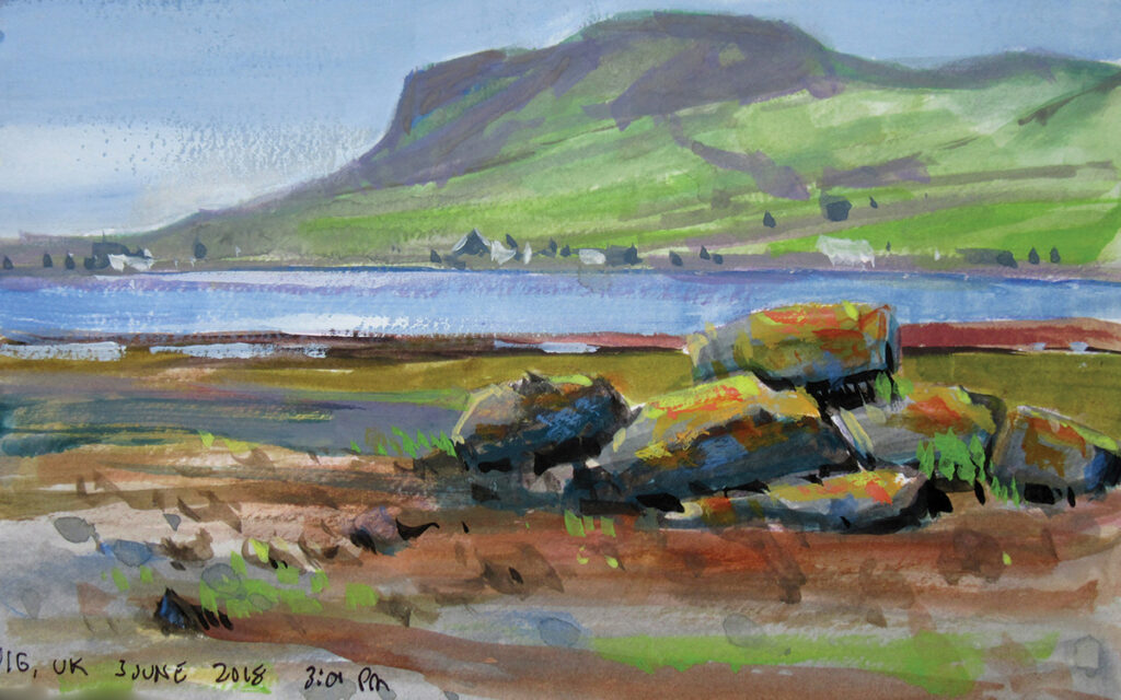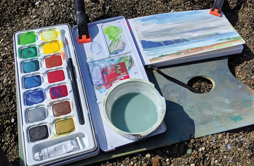 Although I’m a dedicated oil and pastel plein air painter, I find my gouache kit fits my sketching needs perfectly. Whether hiking locally or flying to Scotland, I’m happy to leave my other paints at home and pack my gouache kit instead.